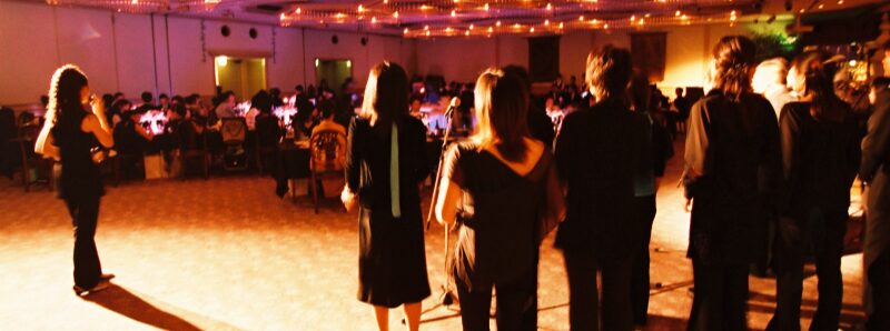 新郎新婦ご入場、新婦中座、キャンドルサービス・余興、ケーキ入刀などの時間帯に1ステージ20分(5曲程度)の演奏をします。